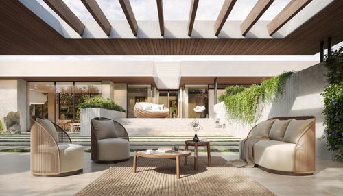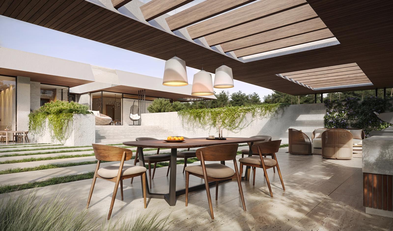 Privatus miesto kiemas - ramybės ir kasdienio buvimo erdvė, kurioje norisi sustoti. Čia kiemas tampa vieta rytinei kavai, lėtam vakarui po atviru dangumi ir tyliai šviesai, keičiančiai nuotaiką kartu su diena. Aplinka kuriama ne akims, o pojūčiams - minkštas žolės paviršius, švelnūs šešėliai, šiltos medžiagos ir natūralus ryšys su namais. Tai kiemas, kuris nekviečia įspūdžiais, bet leidžia jaustis gerai. Paprastai. Natūraliai. Ilgam.