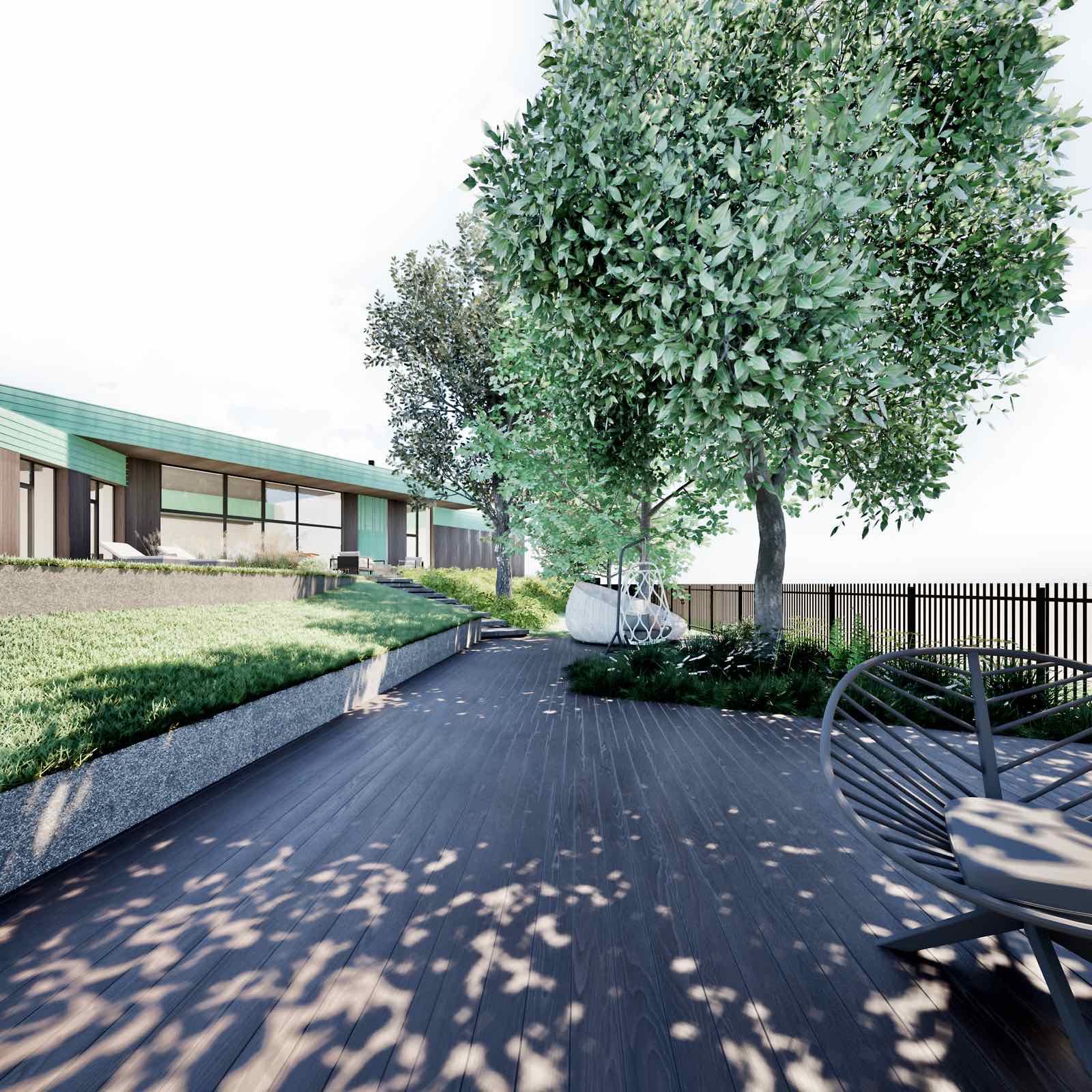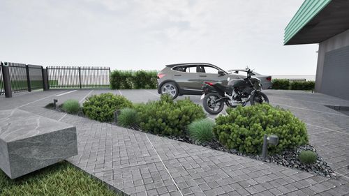 "Tarandės kiemas" - modernaus privataus namo landšafto projektas, kuriame pagrindinis dėmesys skirtas aiškiai erdvės struktūrai ir patogiam kasdieniam naudojimui. Sklypas formuojamas kaip vientisa architektūrinė visuma, kurioje takai, terasos ir želdynai sujungiami logiškais perėjimais. Projekte naudojami tvarkingi minimalistinįai augalų deriniai, pabrėžiantys formą, tekstūrą ir sezoninį kintamumą. Kiemas suplanuotas taip, kad išlaikytų estetiį vientisumą visais metų laikais ir papildytų šiuolaikinę namo architektūrą.